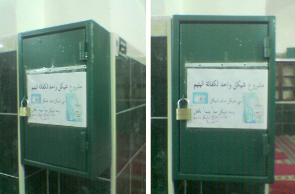بسم الله الرحمن الرحيم السلام عليكم و رحمة الله و بركاته الحمد لله بشرى سارّة تمّ أخيرا ً وضع صندوق خاص بمشروع " شيكل واحد لكفالة اليتيم " في مسجد الأربعين المبلغ المتوفـّرحتى الآن في الدورة الثانية من المشروع هو 400 شيكل بفضل الله و الحمد لله ندعوا أهل الخير أن يسارعوا بالتبرّع ليتم إعطاء التبرّعات لليتيمَين قبل العيد فغدا ً إن شاء الله ستكون آخر فرصة قبل العيد كل عام و أنتم إلى الله أقرب و على الطاعة أدوم تقبّل الله طاعاتكم و جزاكم خيرا ً إليكم صور الصندوق الذي تبرّع به فاعل خير كما تبرّع بالقفل فاعل خير آخر و الحمد لله أن الخير موجود و جزاهما الله ُ كلّ خير و جزاكم الله كلّ خير اللهم صل ِ و سلـّم و بارك على الحبيب سيدنا محمد و على آله و أصحابه أجمعين |