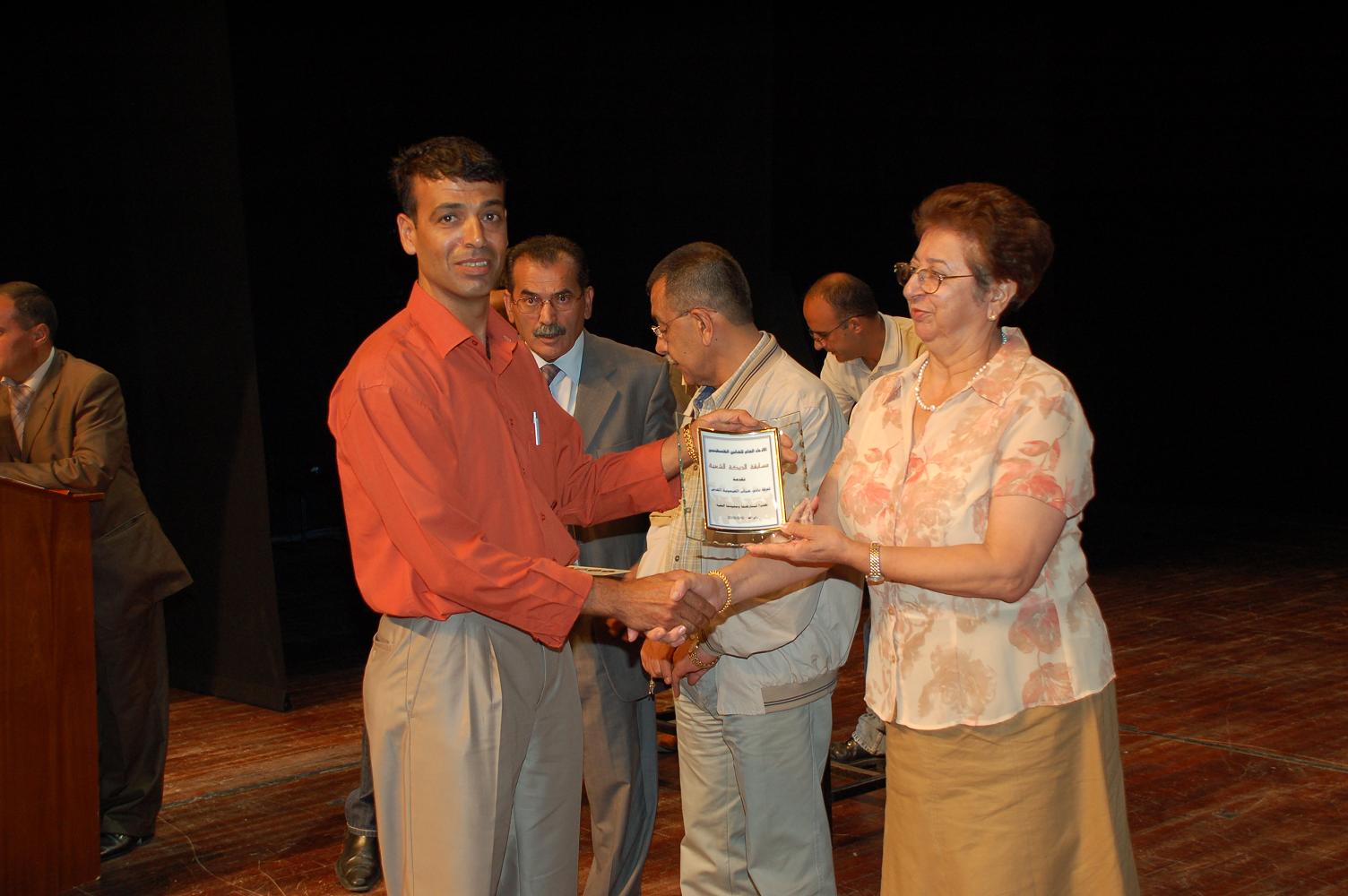 مدير الفرقه عماد محمود يستلم درع المهرجان للدبكة الشعبية