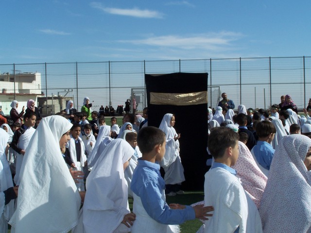 جمعية العيسوية الخيرية تحتفل بعيد الاضحى المبارك  اقامت الاكاديمية العلمية النموذجية ورياض ومدارس احد النموذجية ودأبا على عادتها الاحتفال السنوي بمناسبة عيد الاضحى المبارك وحفل الحج التعليمي على ملعب الشهيد الرمز ياسر عرفات برعاية فضيلة الشيخ رياض العيساوي رئيس الجمعية وبحضور اعضاء الهيئة الادارية والعامة والتدريسية الذين بلغ عددهم واحد وثلاثين موظف وموظفة وتلاميذ المدرسة الذين جاوز عددهم الخمسمئة طالب وطالبة وحشد كبير من المدعوين ووجهاء القرية واهالي الطلاب واولياء الامور حيث بدء الحفل بكلمة ترحيبية من فضيلة الشيخ جمال مصطفى امام وخطيب مسجد الاربعين في القرية حمدالله وشكره على شفاء فضيلة الشيخ رياض العيساوي وعودته سالما لاكمال مسيرته ورسالته في خدمة الاسلام والمسلمين موضحا باسلوبه الشيق والممتع قصة اسماعيل عليه السلام و تم تحضير الطلاب للقيام باداء مناسك الحج التعليمية وتوضيح مفهوم الحج للحضور والتركيز على طاعة الله وبيان اهمية العشر الاوائل من شهر ذي الحجة وذلك على ملعب الشهيد ياسرعرفات حيث اصبح الملعب بعد تجهيزه بمجسم للكعبة المشرفة والمشاعر الاخرى ليشعر الحضور الكرام بعظمة الاسلام واركانه كانهم في احضان مكة المكرمة وعلى جبل الرحمة وقام عريف الحفل الشيخ علي عطا عبيد و الشيخ عبد الكريم الزربا امام المسجد الاقصى المبارك بتوجيه الطلاب لاداء المناسك هاتفين لبيك اللهم لبيك حول مجسم الكعبة الذي تم وضعه في منتصف الملعب ومن ثم ادوا جميع المناسك الواجبة ومن ضمنها ذبح الهدي وبعد ذلك اقيمت المسابقات والفقرات الدينية وتم توزيع الجوائز والهدايا على الطلاب المشاركين والحضور وفازت بالجائزة الكبرى وهي عبارة عن رحلة لتادية العمرة السيدة مزين طه موسى محيسن بعد اجابتها على سوال المسابقة الاصعب والعديد من الجوائز الاخرى وفي نهاية الحفل اجتمع الشيخ رياض العيساوي رئيس الجمعية بحضور الشيخ رائد ابو ريال امين السر والحاج عمر درويش رئيس لجنة حماية واستصلاح الاراضي ومديرة المدرسة المربية امنة مصطفى والشيخ عبد الكريم الزربا ومدير العلاقات العامة الاستاذ يسري حمدان بالطاقم الاداري والتدريسي وشكرهم على جهودهم الجبارة في نجاح هذا الحفل البهيج الذي سر وامتع جميع الحضور وتمنى لهم عيدا سعيدا مباركا  وهذا الاحتفال العاشر لجمعية العيسوية الخيرية الذي تؤديه كل عام لتعليم الطلبة كيفية اذاءالحج ![]() ![]() الشيخ رياض ياسر اول الحاضرين ![]() الشيخ علي عطا عبيد عريف الحفل ![]() ![]() الشيخ جمال مصطفى خطيب جامع الاربعين يُلقي كلمته ![]() ![]() جانب من الحضور ![]() الطالب محمد ابو الحمص في الصف الثالث الابتدائي يُلقي كلمة رحب فيها بالحضور ![]() ![]() ![]() ![]() ![]() ![]() ![]() حوار عن الحج قدمه الطالب منتصر الشرباتي وشقيقته رُسل الشرباتي ![]() ![]() ![]() ![]() ![]() ![]() ![]() ![]() ![]() ![]() ![]() ![]() ![]() ![]() ![]() ![]() ![]() ![]() ![]() ![]() ![]() ![]() ![]() ![]() ![]() ![]() ![]() ![]()  |