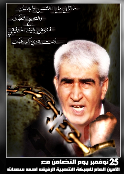 ![]() لابـــد لـــلـــقـــيـــد ان يـــنـــكـــســـــر ![]() ![]() و كما قال الامين العام احمد سعدات سبق وأكدت أنني لا أعترف بشرعية هذه المحكمة باعتبارها امتدادا للإحتلال أنا لا أقف لأدافع عن نفسي أمام محكمتكم فقد سبق وأكدت أنني لا أعترف بشرعية هذه المحكمة باعتبارها امتدادا للإحتلال غير الشرعي وفق القانون الدولي اضافة لمشروعية حق شعبنا في مقاومة الاحتلال ". وأضاف " أنا أقف لأدافع عن شعبي وحقه المشروع في الاستقلال الوطني وحق تقرير المصير والعودة ، هذا الحق كفلته الشرعية الدولية والقوانين الانسانية ومثبت بقرارات صادرة عن مؤسسات الأمم المتحدة وآخرها توصيات محكمة لاهاي بشأن الجدار ، أنا أدافع عن حق شعبنا وعن السلام والاستقرار ليس في هذه المنطقة وحسب بل وأيضا في العالم أجمع ". وتابعقائلا " هذه المحكمة التي أقف أمامها مجددا اليوم هي حد أدوات قمع شعبنا وقهره وكسر مقاومته مثال لعجز الاحتلال وسياساته عن فرض الأمر الواقع على الشعوب ، فعمر هذه المحكمة من عمر الاحتلال الاسرائيلي لفلسطين وإذا ما راجعت الملفات التي تقف أمامها ستجد أن العديد من الملفات يمثل أصحابها للمرة الثانية أو الثالثة بمعنى أن هذه الآلة عجزت عن أن تشكل آلة ردع لمناضل أو لشعب مصمم على النضال من أجل حقوقه ". ![]() الحرية للامين العام احمد سعدات ولاسرانا البواسل في سجون الاحتلال .... حتما لمنتصرون لابـــد لـــلـــقـــيـــد ان يـــنـــكـــســـــر مع تحياتي |