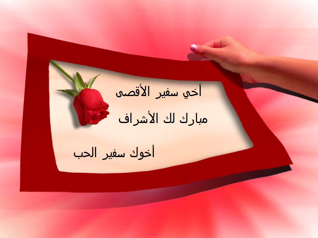 بسم الله الرحمن الرحيم أخوي الحبيب سفير الأقصى تأخرنا جميعا بالمباركة لك بالأشرف ألف مبروك أعذرنا على تأخرنا والك مني هالهدية ![]() مع تحياتي : أخوك سفير الحب1 |